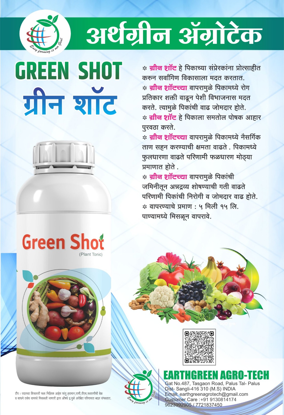 - ग्रीन शॉट हे पिकाच्या संप्रेरकांना प्रोत्साहीत करुन सर्वांगिण विकासाला मदत करतात.